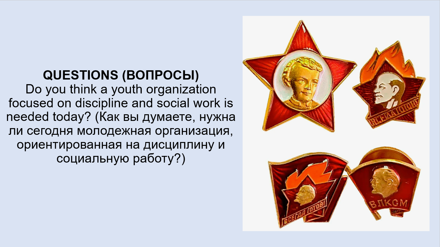 Find some information about a certain youth organization. Think of how to present it to the class in the most interesting way. Give your presentation. Remember that it shouldn’t exceed 5–7 minutes. Decide whose presentation is the best and explain why. (Найдите информацию об определенной молодежной организации. Подумайте, как представить ее классу наиболее интересным способом. Сделайте презентацию. Помните, что она не должна превышать 5–7 минут. Решите, чья презентация лучшая, и объясните почему.)