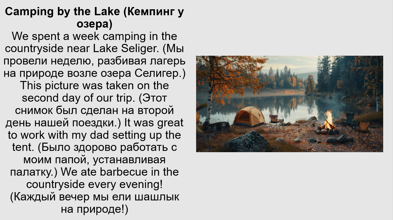 Добавить текст Озвучить Вернуть оригиналmountain-climbing holiday (отпуск в горах)