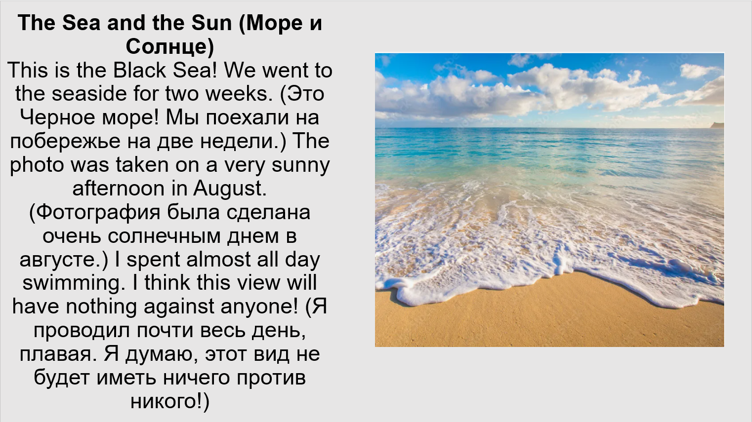 seaside holiday (отпуск на море)
