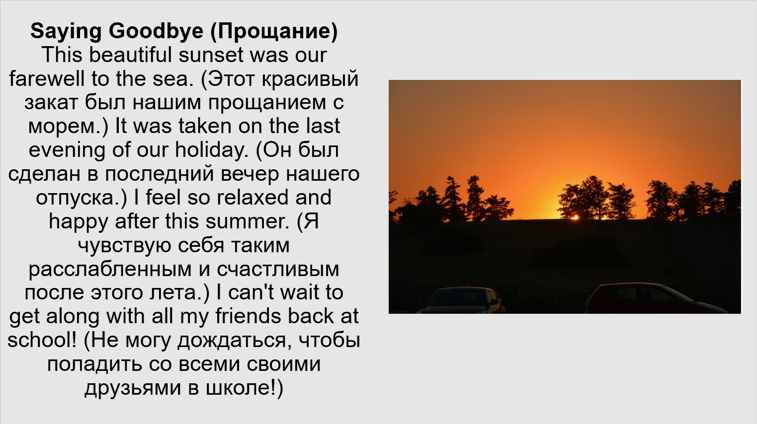11. Work in groups. Show your summer photos to each other. Explain when and where they were taken. Make a presentation of your favourites. (Поработайте в группах. Покажите друг другу свои летние фотографии. Объясните, когда и где они были сделаны. Сделайте презентацию своих любимых.)