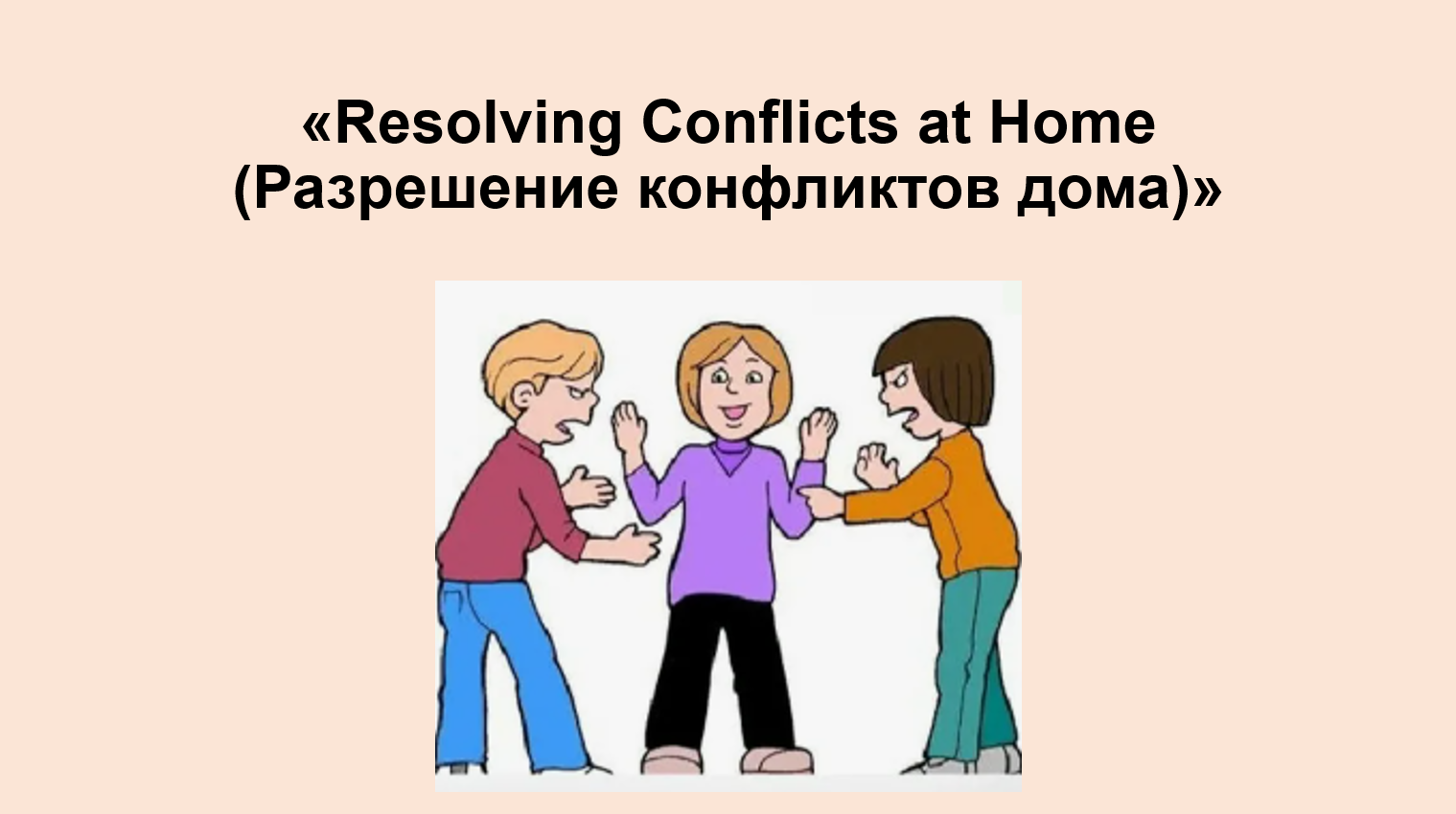 1. What kind of conflict was it (a conflict between adults, a conflict between children, a conflict between a child and the parents)? (Какой это был конфликт (конфликт между взрослыми, конфликт между детьми, конфликт между ребенком и родителями)?)