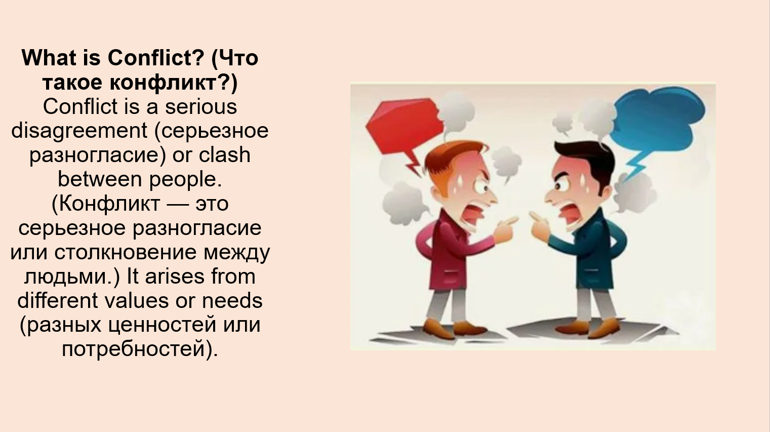 2. May: Conflicts may lead to fights, bad relations and violence. (Конфликты могут привести к дракам, плохим отношениям и насилию.)
