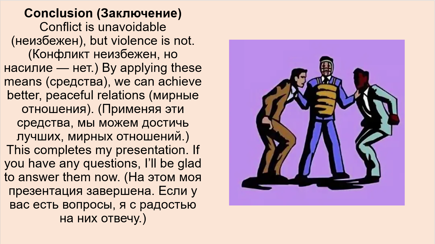 49. Speak about the resolution of the conflict: (Расскажи о разрешении конфликта:)
