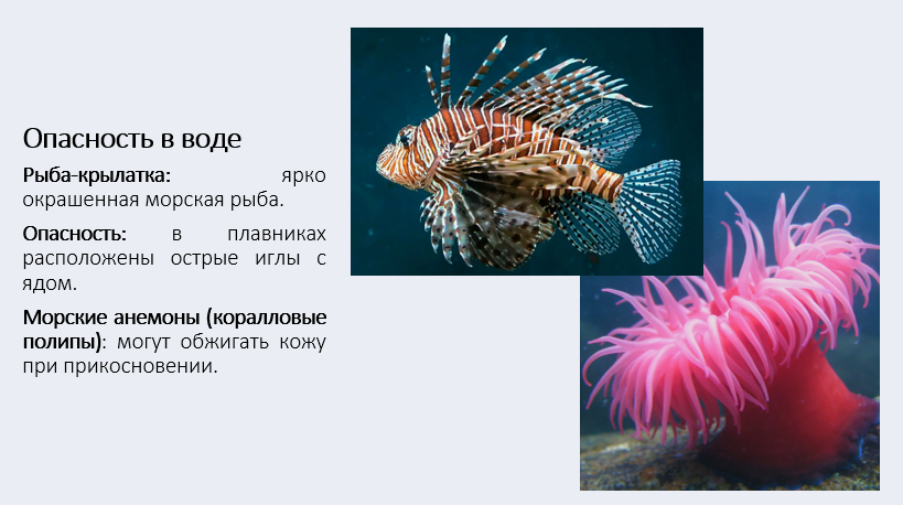 Добавить текст Озвучить Вернуть оригинал3. Опасные обитатели водной среды. Знакомство с рыбой-крылаткой и её защитными механизмами.