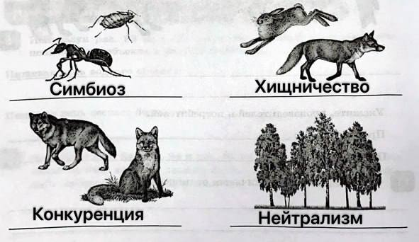 Эти отношения различаются по характеру влияния организмов друг на друга: при симбиозе оба вида получают пользу, при хищничестве и паразитизме один получает пользу за счёт другого, при конкуренции оба вида угнетают друг друга, а при нейтрализме они никак не взаимодействуют.