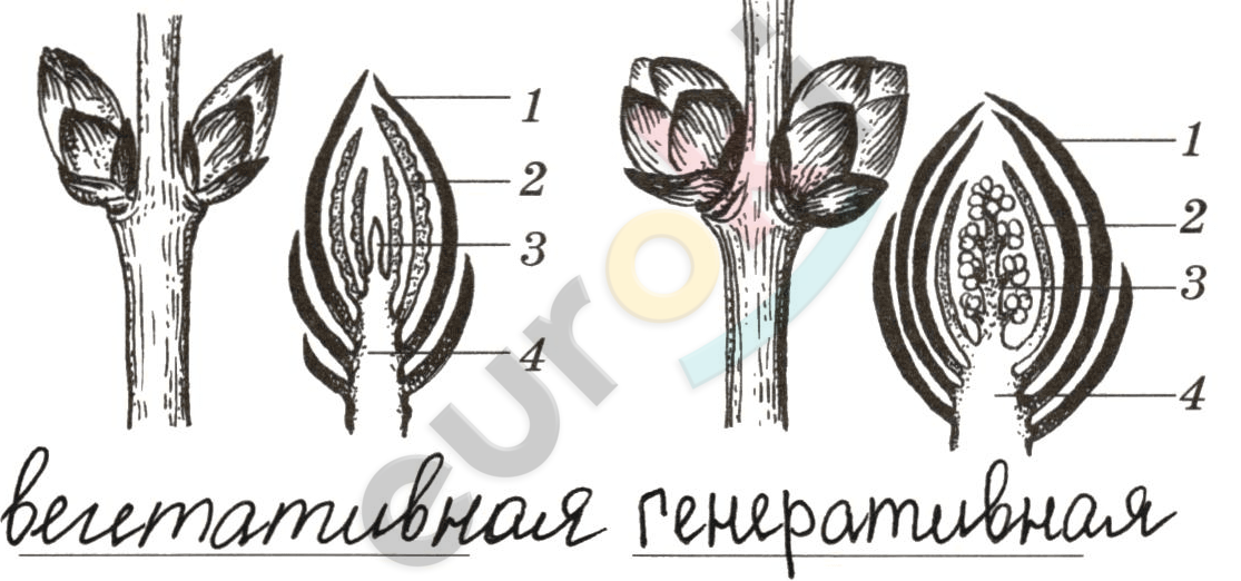 Вывод: Из вегетативной почки в результате будет развиваться побег с листьями, а из генеративной будет развиваться цветок.