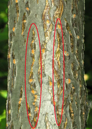 1. Рассмотрите чечевички на ветвях бузины, черёмухи, дуба и других деревьев и кустарников.