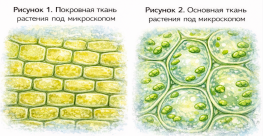 По учебнику определено, что один микропрепарат представляет покровную ткань, а другой — основную ткань растения.