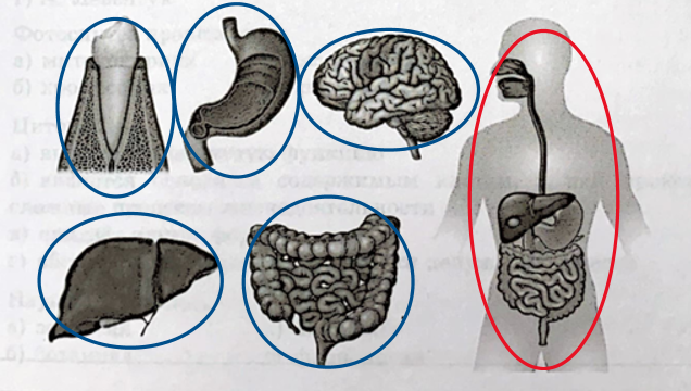 4. Отметьте на рисунке красным карандашом систему органов, синим — её компоненты.