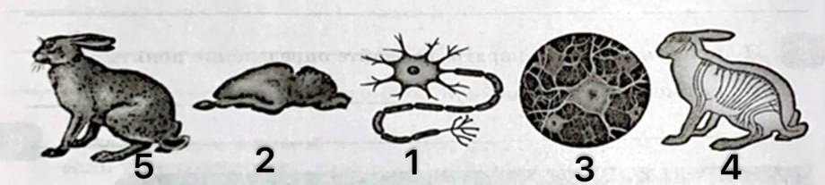 6. Рассмотрите рисунок. С помощью цифр расположите компоненты организма животного в нужном порядке.