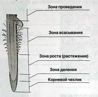 1. Рассмотрите схему. Подпишите названия зон корня.