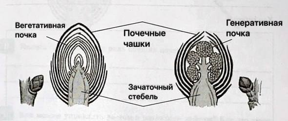 На побеге обнаружены два вида почек: