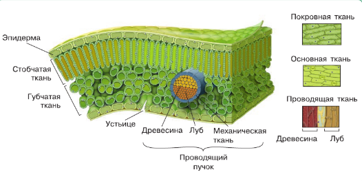 3. Нарисуйте внутреннее строение листа и подпишите его части.
