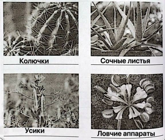 Добавить текст Озвучить Вернуть оригинал7. Определите и подпишите, какие видоизменения листьев изображены на рисунках.