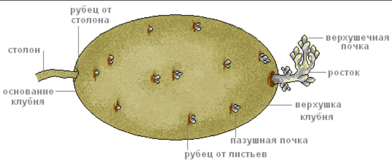 2. Зарисуйте внешний вид клубня, подпишите его части.