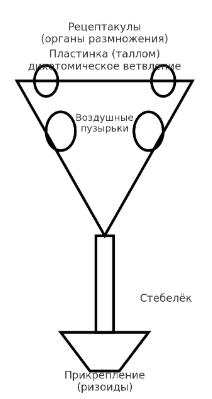 Добавить текст Вернуть оригиналТаллом фукуса имеет плоский, ремневидный, сильно рассечённый таллом с воздушными пузырями.