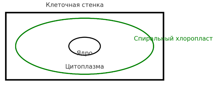 Добавить текст Вернуть оригиналОсобенностью клетки является спиральный лентовидный хлоропласт.