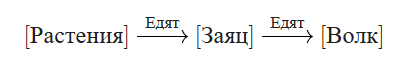 8. Начертите схему пищевых связей волка и зайца, учитывая, что каждый из них — многоядный вид и служит источником пищи для других. Каждый вид обозначьте кружком, каждую связь — стрелкой от жертвы к хищнику.