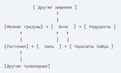 Усложненная схема (с учётом многоядности и того, что они сами — источник пищи):
