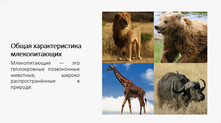 План презентации на тему «Значение млекопитающих в природе и жизни человека»: