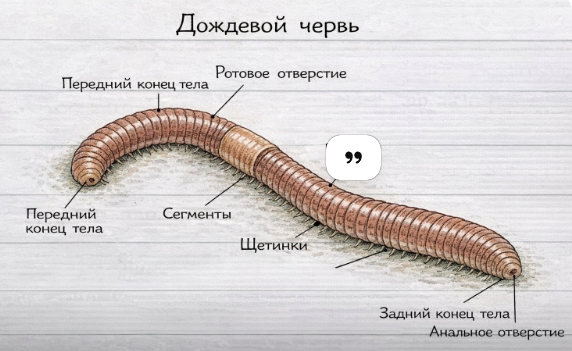 После выполнения работы зарисуйте дождевого червя и укажите части его тела.