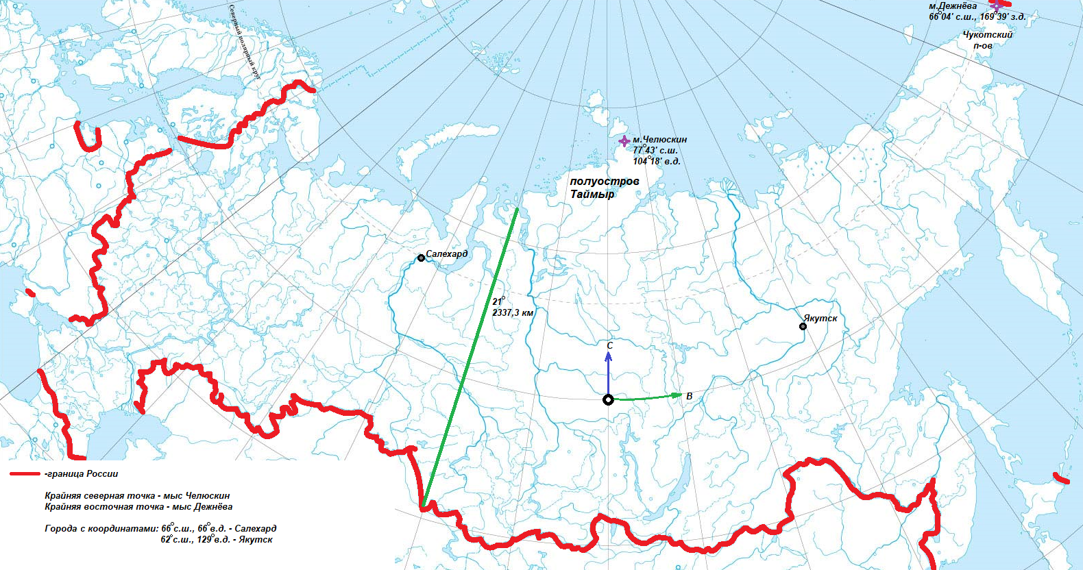5. Длина отрезка 21°, в 1° широты 111,3 км,