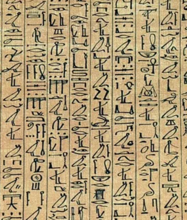 Древнеегипетская письменность возникла в виде иероглифов — «священных знаков», которые вырезали на камне или наносили на папирус. Изначально каждый знак был рисунком, изображавшим конкретный предмет, человека или животное. Со временем система усложнилась: иероглифы стали обозначать не только целые понятия и слова, но и отдельные звуки речи. Письмо считалось «словами бога», и владели им в основном жрецы и писцы.