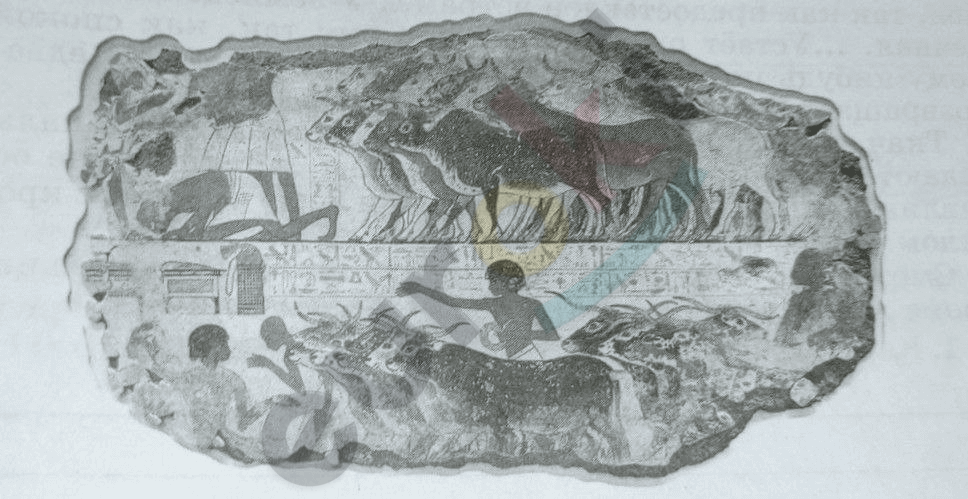 Добавить текст Вернуть оригиналСюжет рисунка посвящен сбору налогов в Древнем Египте. В белых одеждах с посохом в руках изображён вельможа. Вокруг него находятся стражники и писец (сидящий на земле человек со скрещенными ногами). Животных ведут к фараону, чтобы уплатить налог в виде животного. Писец был обязан вести учёт собранных с каждого земледельца налогов. В то время налоги платились не деньгами, а в натуральной форме, то есть частью урожая (зерном). Человек на коленях со связанными руками – земледелец, которому, по-видимому, не хватает зерна для уплаты налога. Находящаяся слева женщина с детьми – это семья земледельца. За неуплату налога земледелец будет подвергнут телесным наказаниям.