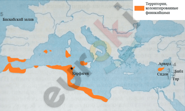 1. Подпишите названия финикийских городов, обозначенных на карте цифрами.