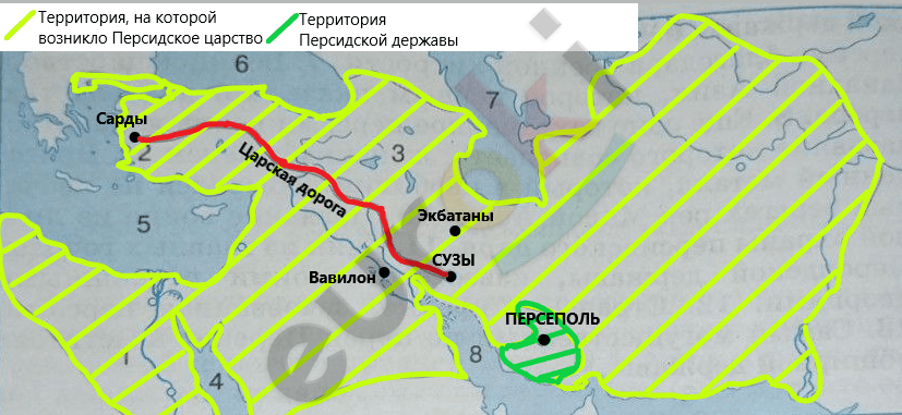 4. Напишите названия территорий, подвластных персидским царям, обозначенных на карте цифрами.
