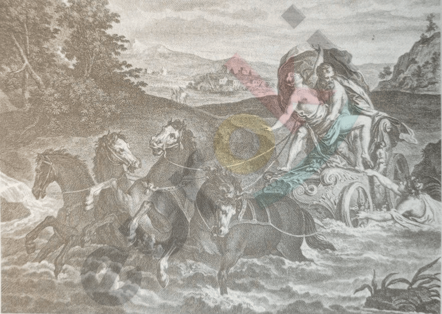 Добавить текст Вернуть оригиналЭта иллюстрация из мифа «Похищение Персефоны». На рисунке изображена юная Персефона, дочь богини плодородия Деметры, и похитивший ее бог подземного «царства мёртвых» Аид. По итогу Персефона стала женой Аида. Одну треть года она проводила в подземном царстве, а две трети - на земле.