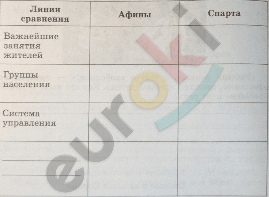 Задание № 26 Заполните сравнительную таблицу «Афины и Спарта». Одну линию для сравнения придумайте самостоятельно.