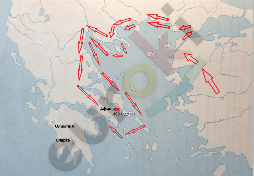 4. Обозначьте знаком (Х) место битвы, в которой афиняне победили персов. Рядом подпишите год сражения.