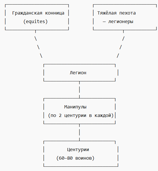 5. Заполните схему «Структура римской армии в III (3) в. до н. э.».