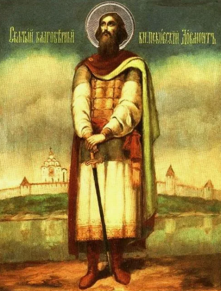 Личность Довмонта в источниках — это редкое сочетание политической гибкости и принципиальности. Как иноземец по происхождению, он не стал проводником чужой воли: приняв крещение и имя Тимофей, князь отождествил себя с православным городом, а его союз с новгородцами делал северо-западный пояс устойчивым. По кончине (1299) его похоронили в Троицком соборе, а позднее причислили к местночтимым святым как небесного покровителя Пскова — воителя и защитника града.