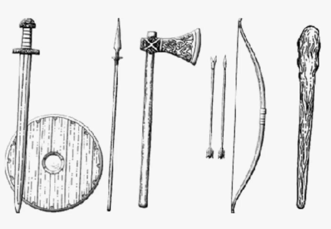 Главным наступательным оружием был меч. В X–XI веках широко встречаются высококачественные клинки «вариантов Ульфберта» каролингского типа со стальными вставками и долами; позднее усиливается влияние ромейских и восточных мастерских, а к XII веку — мечи «романского» типа с развитой гардой. На ближней дистанции действовали боевые топоры: от лёгких «секер» до узкоголовых бердышей и «бродексов», удобных для рубящего удара и пробивания доспеха. Универсальным оставалось копьё — с листовидным или ромбическим пером; его метали как сулицу, им же сражались в строю и с коня. Распространён лук со стрелами с разными типами наконечников: широкие — против незащищённых целей, гранёные и «листики» — против доспехов; в приграничных степных зонах употреблялся составной лук. Кинжалы и ножи дополняли набор как резервное оружие.