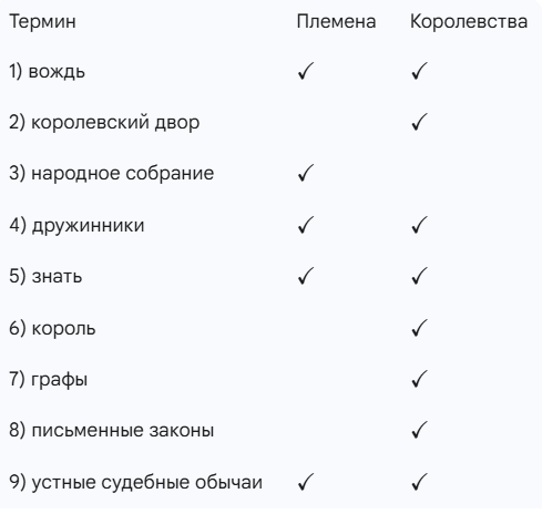 1. Определите, какие термины относятся к устройству и организации жизни германских племён, а какие — германских королевств.