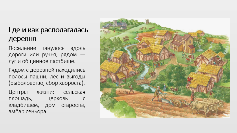 Так средневековая деревня представляла собой замкнутый, но живой мир, где каждый человек знал своё место и обязанности. Труд, вера и общинная взаимопомощь были главными основами жизни её жителей.