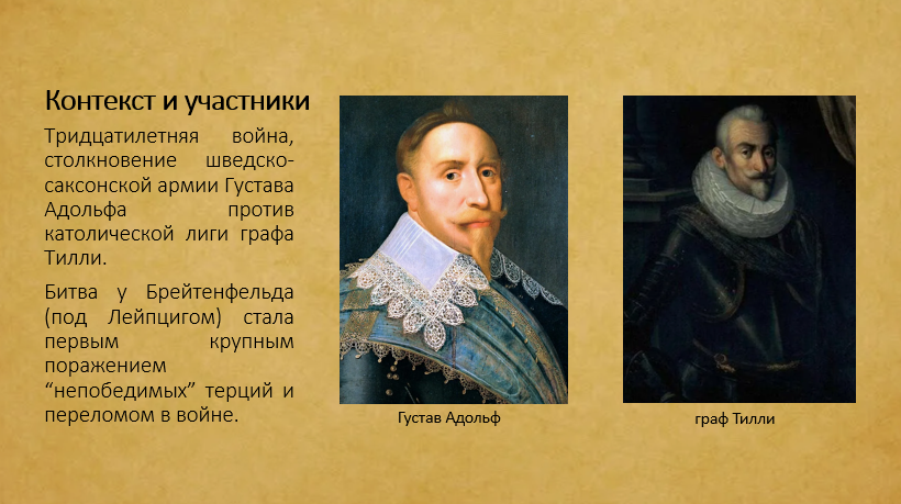 Используя дополнительные источники, подготовьте презентацию об известной битве XVI – XVII вв., в которой были бы продемонстрированы достижения времён «военной революции».