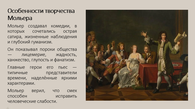 • Социальный статус и предназначение: Искусство должно было служить государству и высоким целям. Смешивать «высокие» и «низкие» элементы (например, вводить крестьян в трагедию) запрещалось, чтобы не нарушать художественную иерархию и не снижать моральный пафос произведения.
