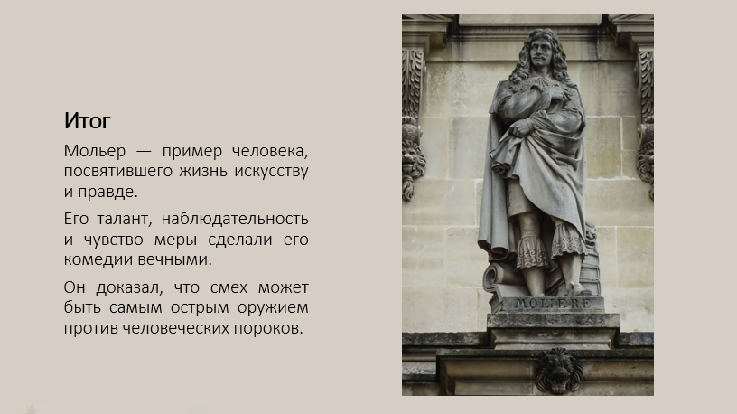Вывод: Смех вызван несоответствием между огромными амбициями Журдена и его абсолютной невежественностью, а также его буржуазной прагматичностью, которую он пытается применить к высокой науке.