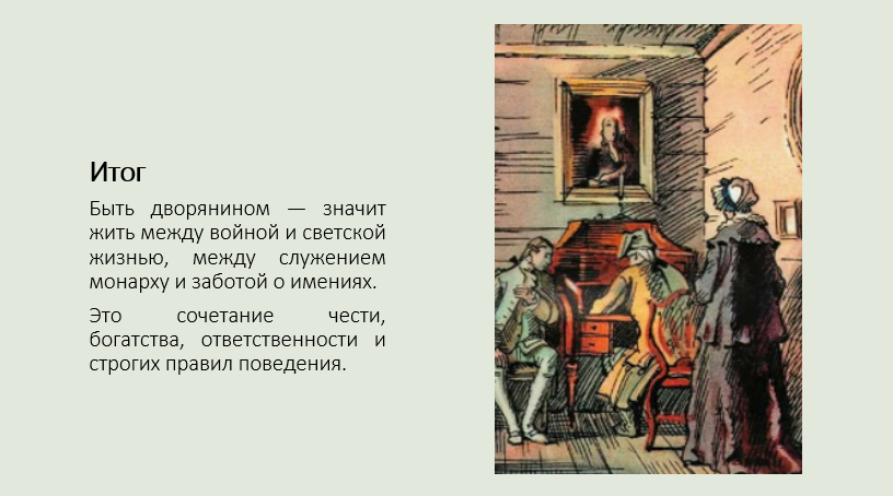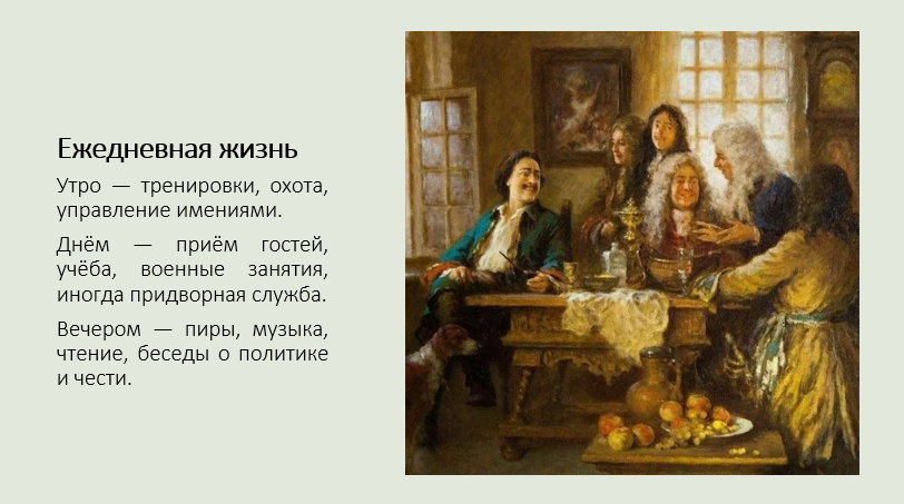2. Быть дворянином в раннее Новое время. С помощью Интернета или дополнительной литературы подготовьте живой рассказ, основанный на собирательном образе дворянина, включающий в себя элементы исследовательского и литературного характера. Рассказ снабдите презентацией на тему.