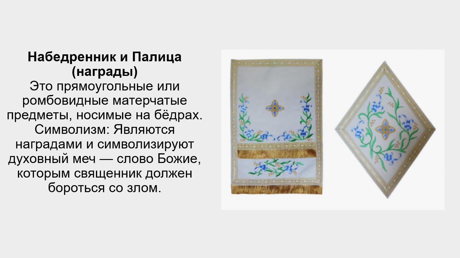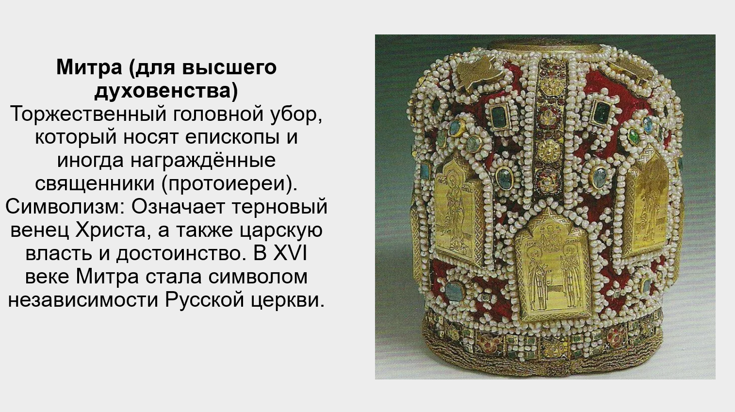 Подготовьте небольшое сообщение-презентацию на тему «Предметы одежды священнослужителей».