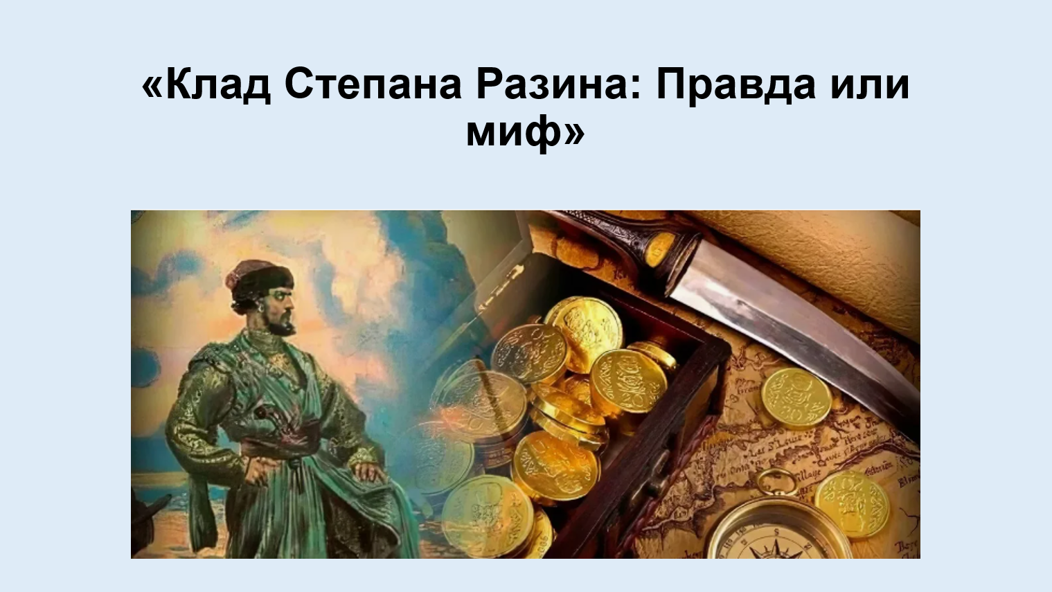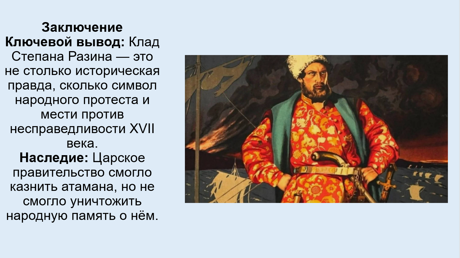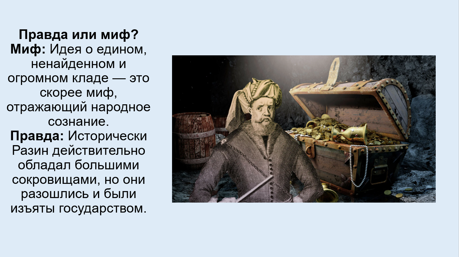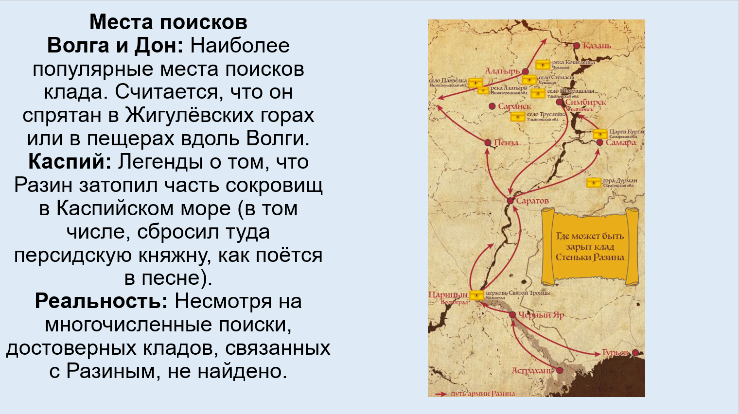 9. Подготовьте сообщение (презентацию) на тему «Клад Степана Разина: правда или миф» (для поиска информации используйте интернет-ресурсы).