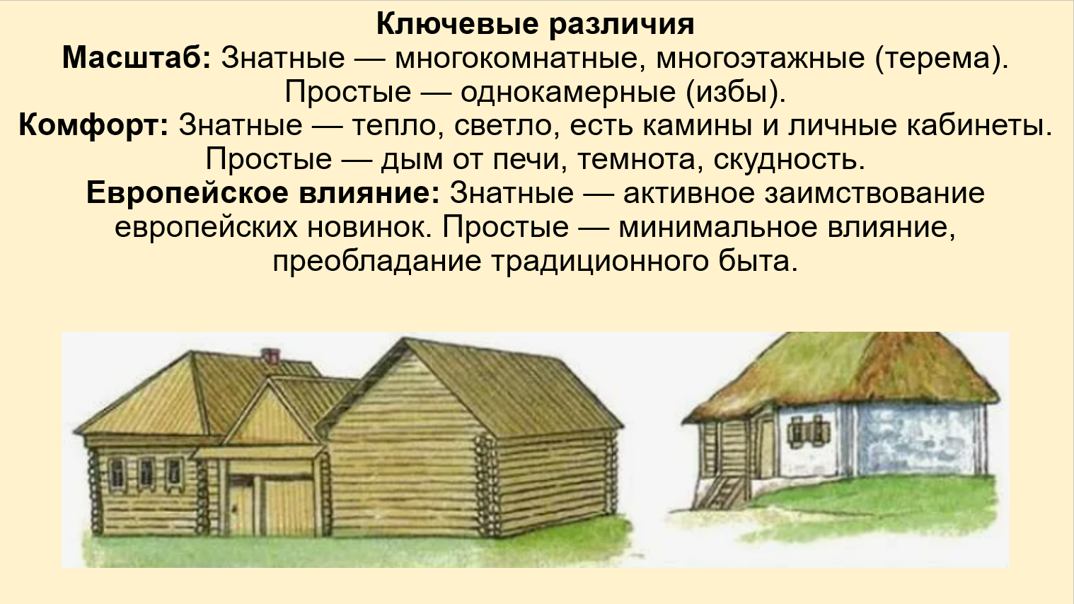 5. Чем различались жилища знатных и простых людей? (Подготовьте презентацию.)
