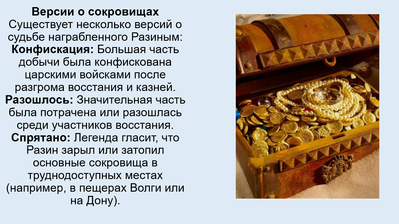 Добавить текст Озвучить Вернуть оригинал9. Подготовьте сообщение (презентацию) на тему «Клад Степана Разина: правда или миф» (для поиска информации используйте интернет-ресурсы).