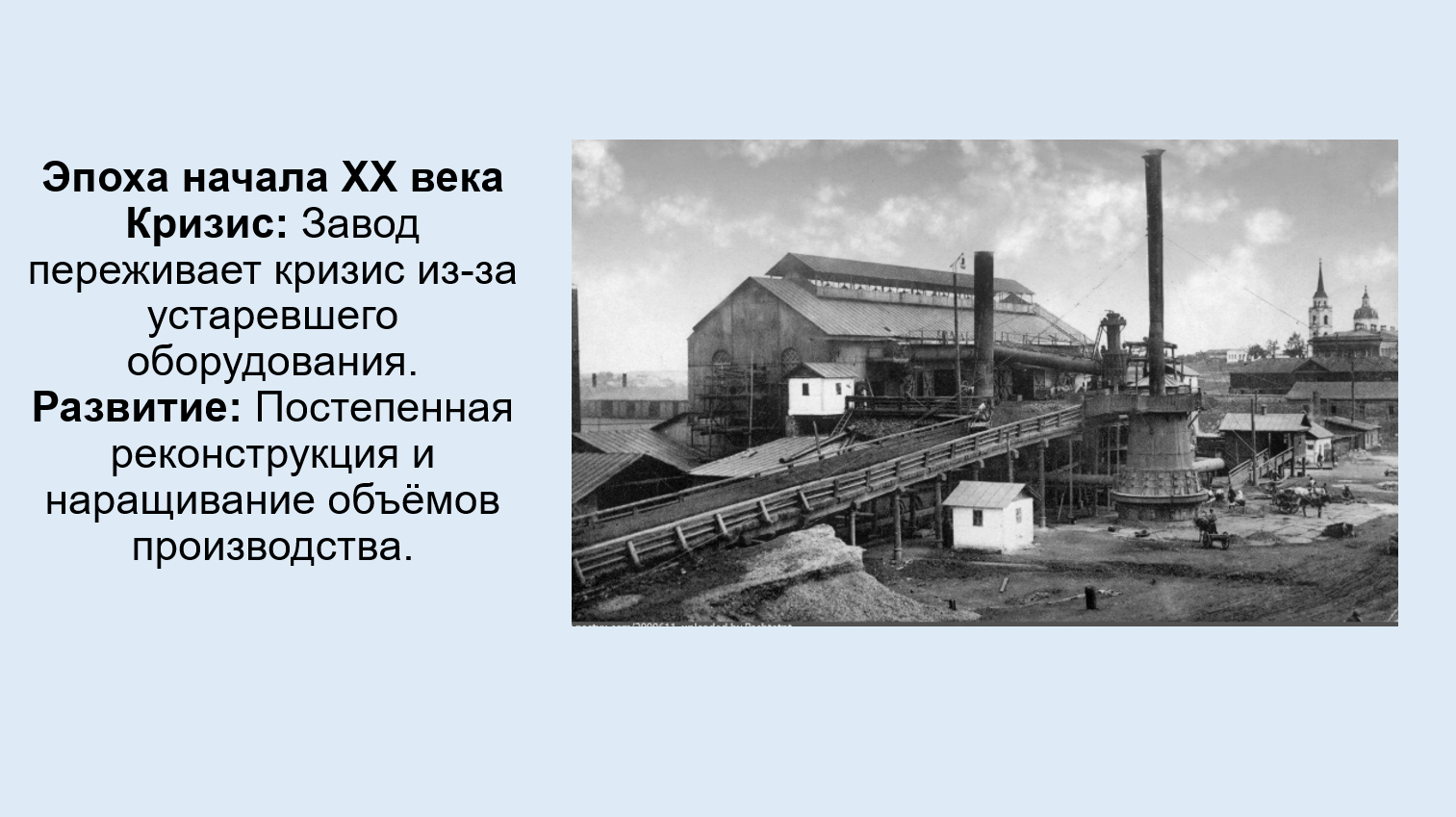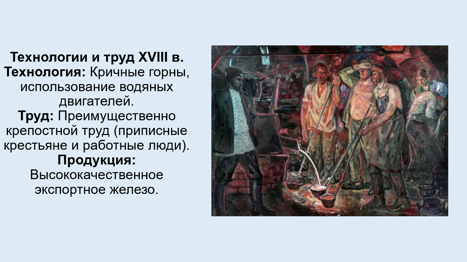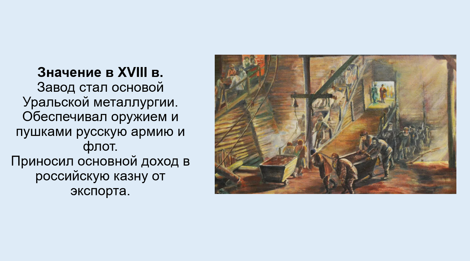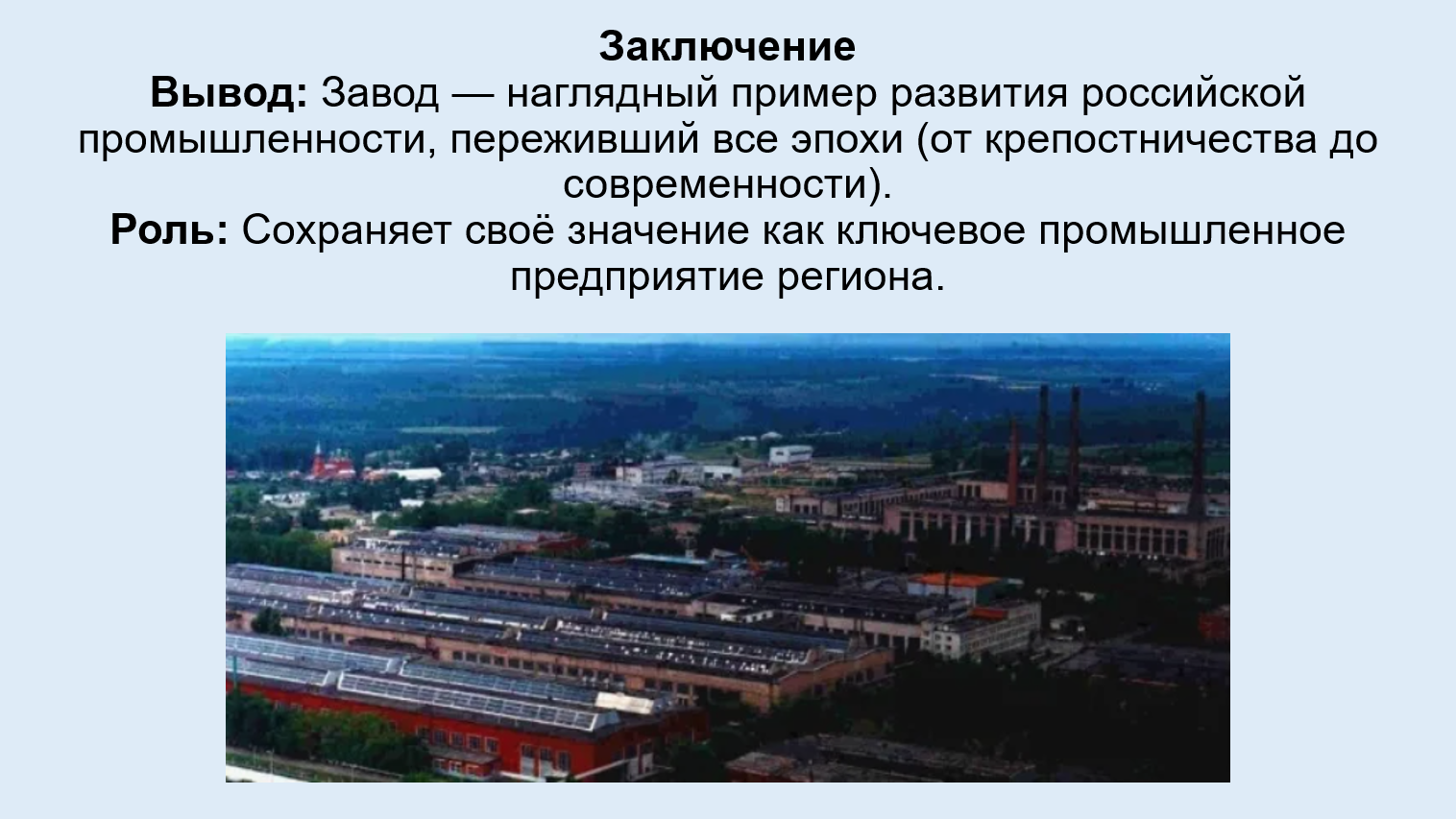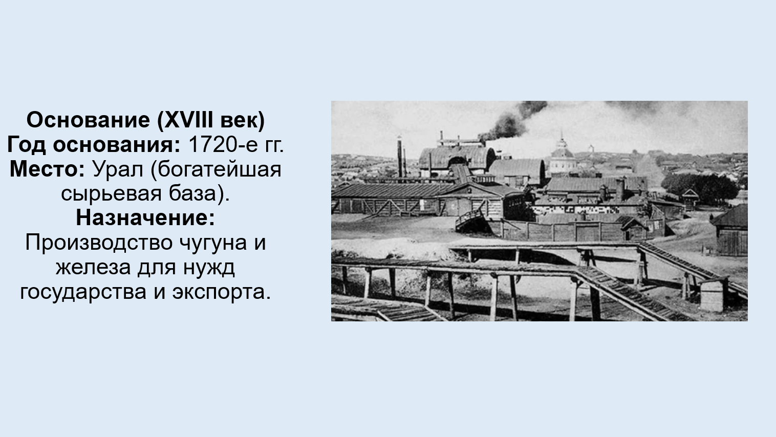Добавить текст Вернуть оригинал2. Рождение российской промышленности. Соберите материалы о зарождении и истории одного из известных российских промышленных предприятий, возникших в XVIII в. (желательно на территории вашего города или региона). Подготовьте презентацию об этом предприятии, включающую в том числе данные о его истории в XIX–XX вв.