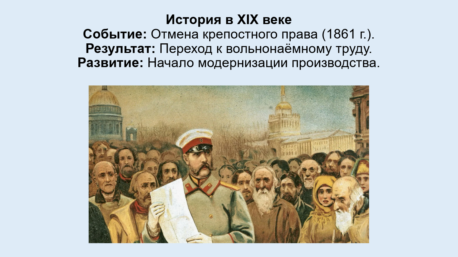 Добавить текст Вернуть оригиналЕвропа (Запад): Россия отставала от передовых стран (Великобритании), где началась промышленная революция, основанная на свободной рабочей силе.