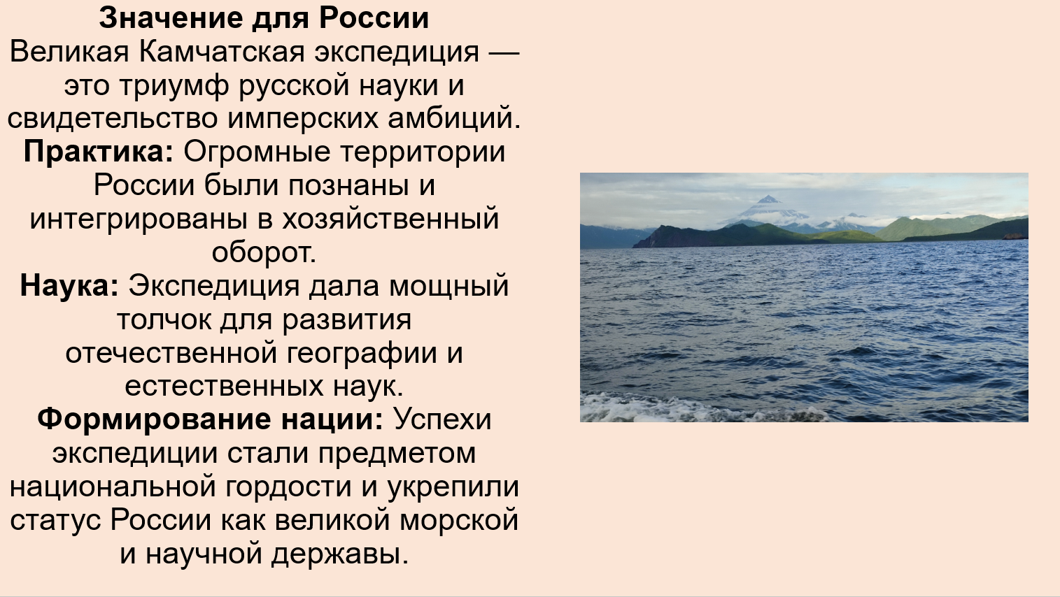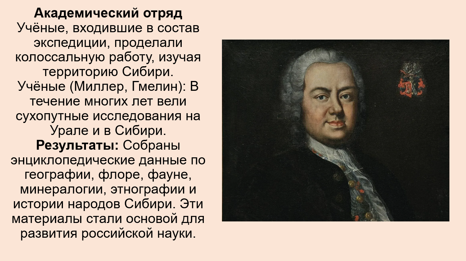 1. Познание России: экспедиции Петербургской Академии наук. При непосредственном участии Петра I началась разработка проектов научных экспедиций для изучения различных регионов России. Это стало одной из главных задач созданной в 1725 г. Петербургской Академии наук. Используя дополнительные источники информации, соберите материалы об одной из академических экспедиций XVIII в. (по выбору), её участниках и результатах. Подготовьте презентацию с демонстрацией исторических и современных изображений местностей, изученных в ходе экспедиции.