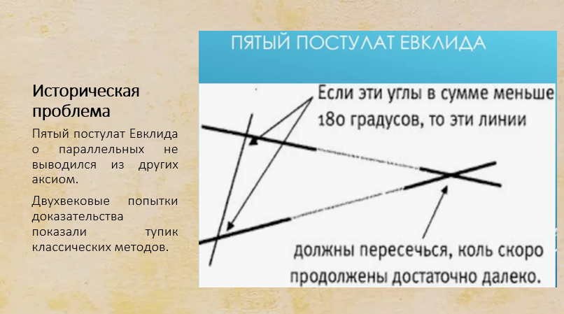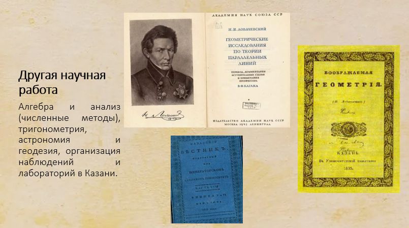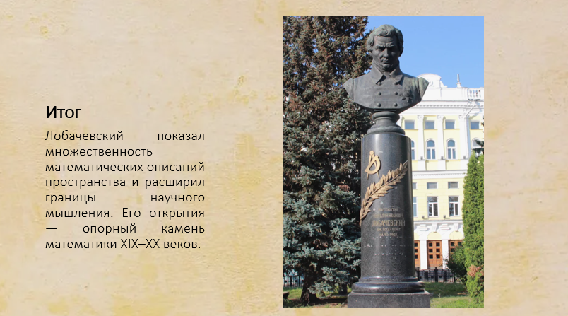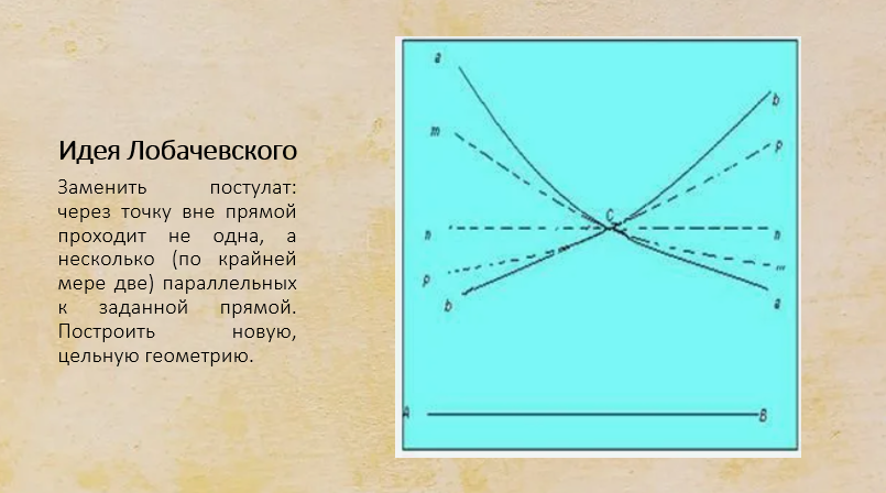 Добавить текст Вернуть оригиналМатематика: создание неевклидовой геометрии (Лобачевский).